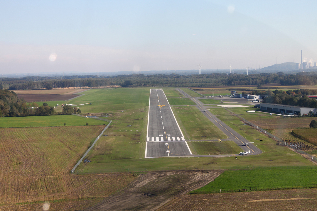 Wir fliegen vom Flugplatz Dinslaken Schwarze-Heide. Der Flugplatz liegt idyllisch im Norden des Ruhrgebiets.